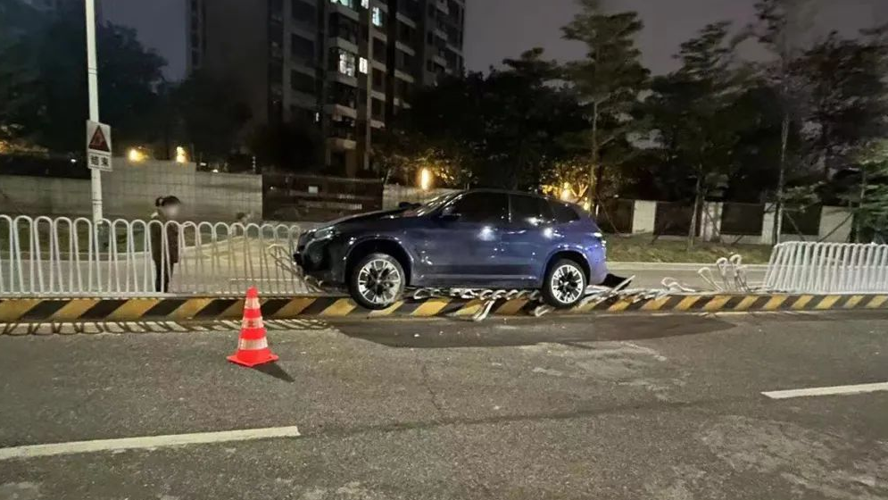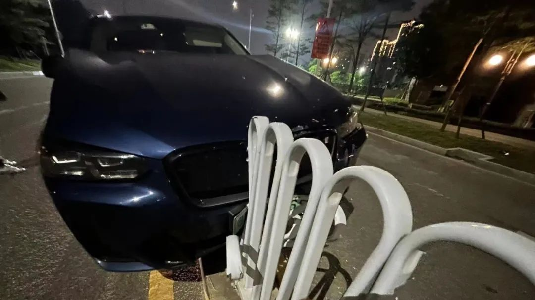 在佛山,顺德区北滘镇某路段处,一辆小车铲上了道路中间分隔栏。该车车头、车尾均有不同程度损坏,所幸事发时司机系好了安全带,没有受伤。