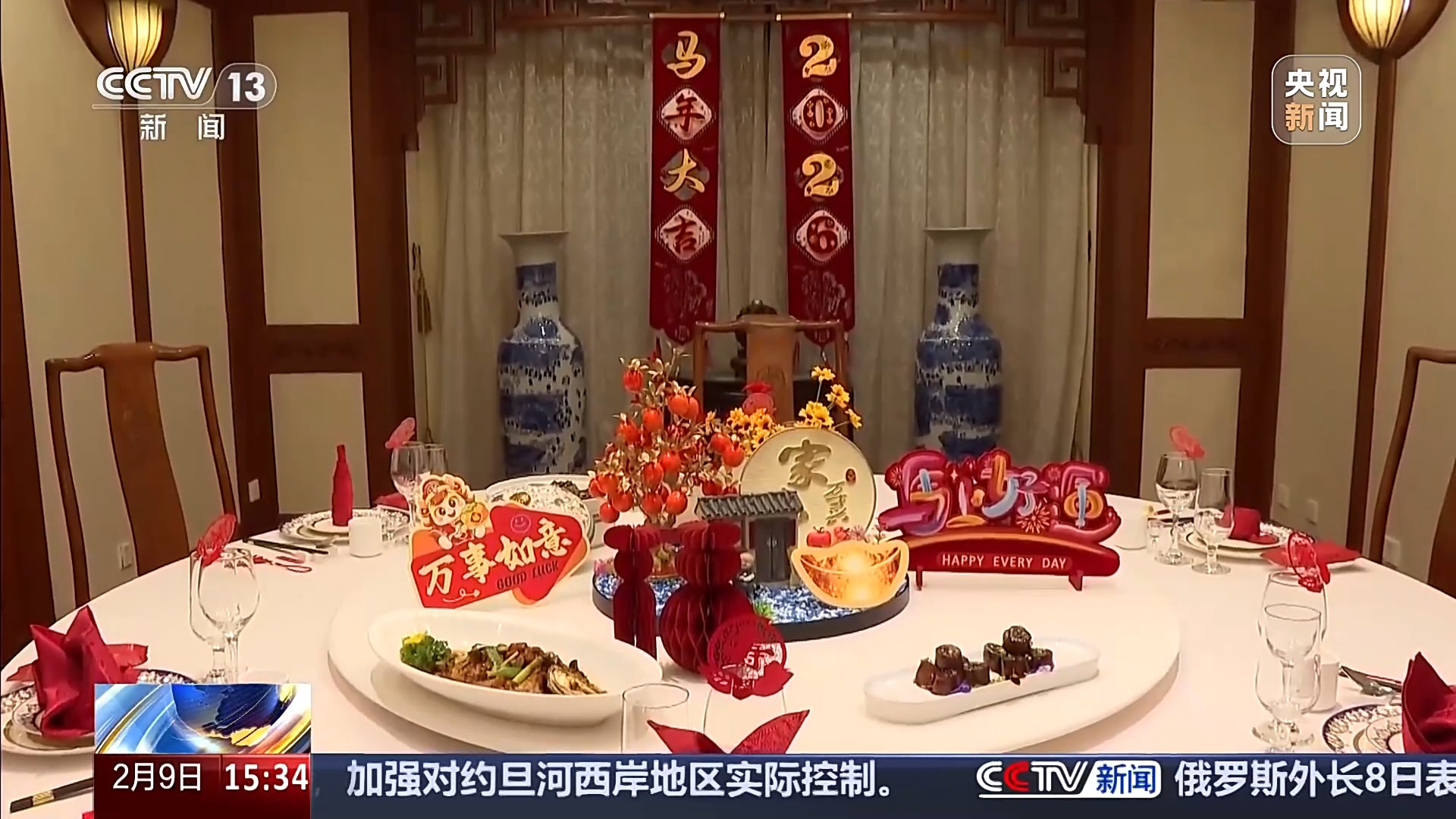而在这家老字号饭店,喜庆的环境装饰和摆台,让节日氛围扑面而来。